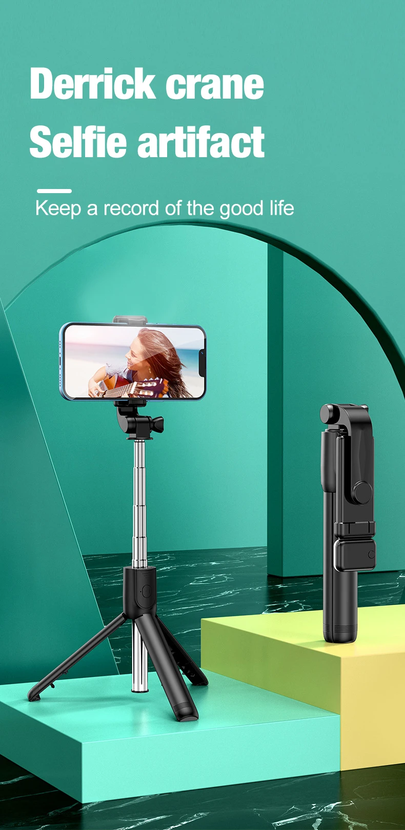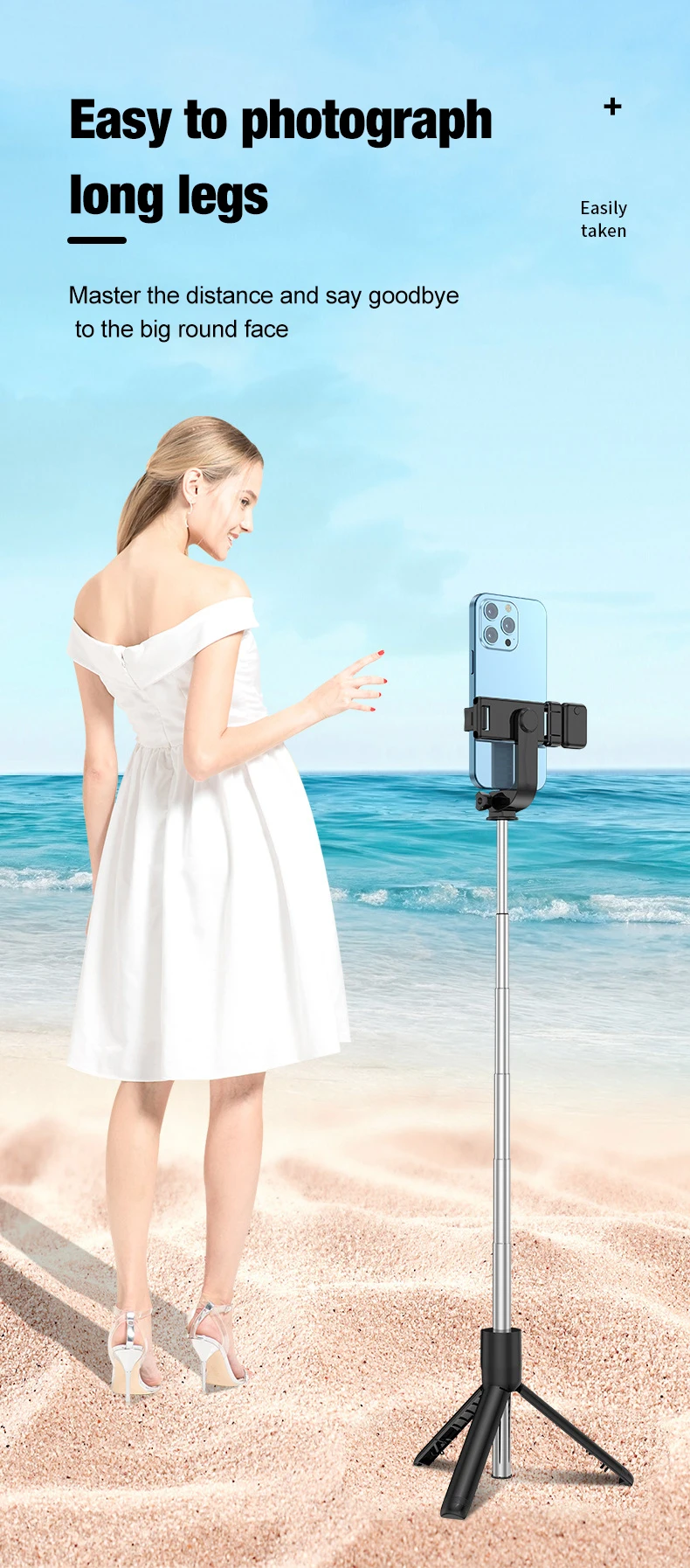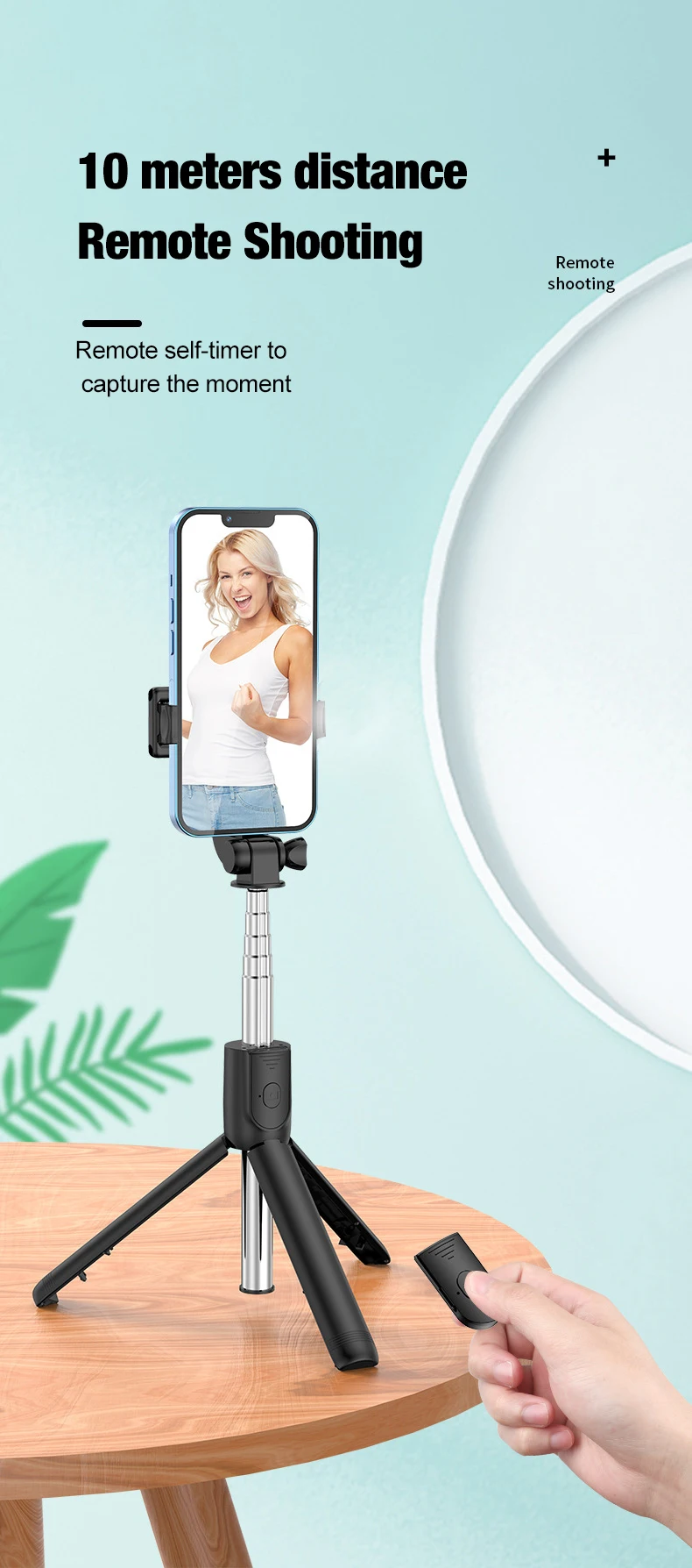حامل ثلاثي القوائم لسيلفي مزود بتقنية البلوتوث مع حامل هاتف محمول لاسلكي متعدد الوظائف قابل للتمديد وتسجيل فيديو بث مباشر
