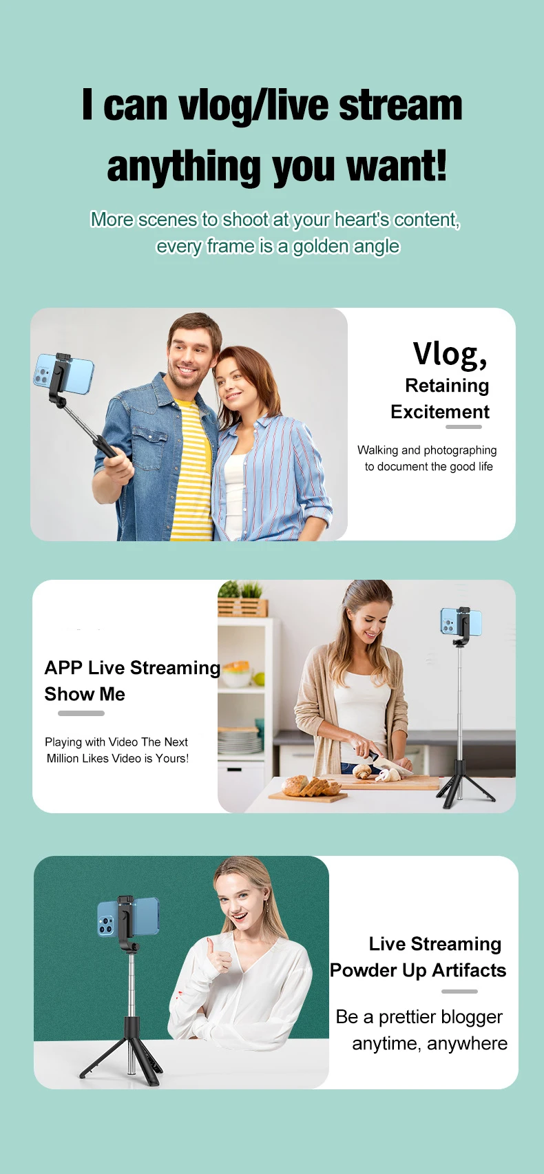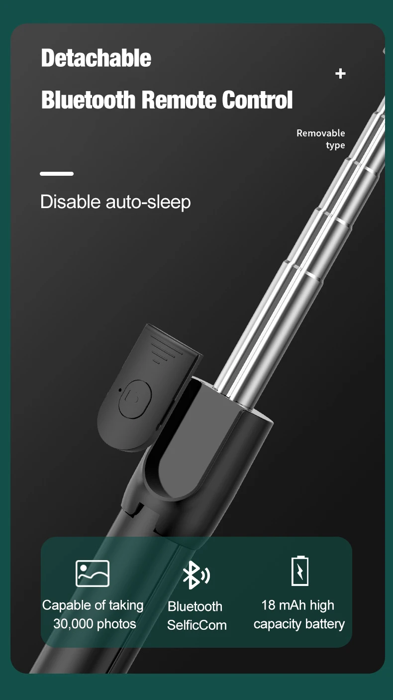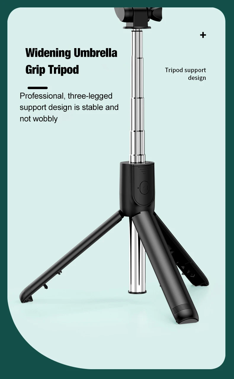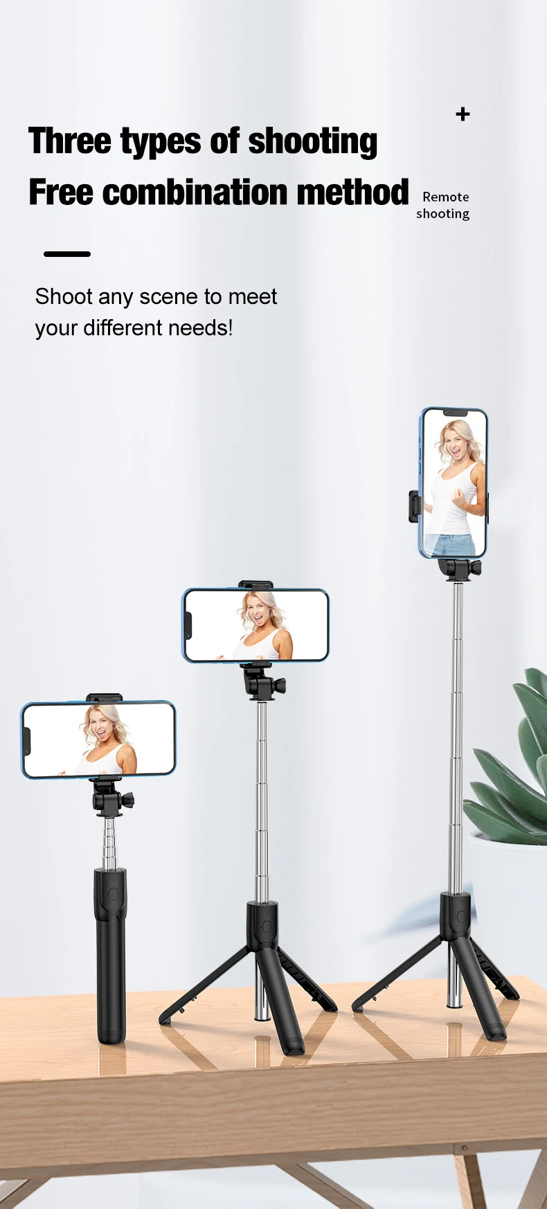 حامل ثلاثي القوائم لسيلفي مزود بتقنية البلوتوث مع حامل هاتف محمول لاسلكي متعدد الوظائف قابل للتمديد وتسجيل فيديو بث مباشر